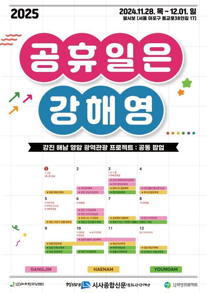 À̹ø ÆË¾÷ÀÇ ÇÙ½ÉÀº ¡®2025³â °ÇØ¿µ ´Þ·Â¡¯. 1~12¿ù·Î ±¸¼ºµÈ ÀÌ ´Þ·Â¿¡´Â µµ½Ã¹ÎÀÌ °øÈÞÀÏ¿¡ °ü±¤ÇÒ ¼ö ÀÖ´Â °Áø¡¤Çس²¡¤¿µ¾ÏÀÇ Ã¼Çè Çà»çµé·Î »©°îÇÏ´Ù. À̺¥Æ® Âü¿©ÀÚµéÀº °ÇØ¿µ ´Þ·ÂÀ» º¸°í, ÀڽŸ¸ÀÇ ¼¼ Áö¿ª ¿©Çà °èȹÀ» § ´ÙÀ½, ÇØ´ç üÇèÀÌ ¹ú¾îÁö´Â ÆË¾÷ °ø°£À¸·Î À̵¿ÇØ ´Ù¾çÇÑ ¹Ì¼ÇÀ» ¼öÇàÇÏ¸é µÈ´Ù.