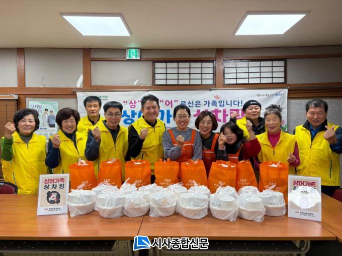 Çе¿ ¸¶À»»ç¶ûä ¿î¿µÇùÀÇü¿¡¼´Â ¸Å´Þ »óÀΰú ¾î¸£½ÅÀÇ °Ç°ÇÑ ½Ä»ýȰÀ» À§ÇØ ºñºö¹äÀ» ¸¸µé¾î Àü´ÞÇÏ´Â ÇÁ·Î±×·¥À» ¿î¿µ ÁßÀε¥, À̳¯ Çà»ç¿¡´Â ÇùÀÇü À§¿ø 10¿© ¸íÀÌ Âü¿©, 10°¡Áö Àç·á¸¦ Ȱ¿ëÇØ Á¤¼º²¯ ¸¸µç ºñºö¹ä°ú ÆÄ±èÄ¡, ±¹À» »óÀεé°ú °æ·Î´ç ¾î¸£½Åµé¿¡°Ô Àü´ÞÇÏ¸ç °Ç°°ú ¾ÈºÎ¸¦ »ìÆñ´Ù.
