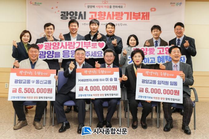 ±âºÎ±Ý Àü´Þ½Ä¿¡´Â À̼ø½É ±¤¾ç±³Åë ´ëÇ¥, ¼±ÇüÁ¾ ±¤¾ç±³Åë ÁöºÎÀå, ¿ÀÁ¡Åà µ¿½Å±³Åë ÁöºÎÀåÀÌ Âü¼®ÇØ ±âºÎ±ÝÀ» Àü´ÞÇßÀ¸¸ç, ±¤¾ç½Ã¿¡ °íÇâ»ç¶û ±âºÎ±Ý 400¸¸ ¿øÀ» ÄèôÇÑ À̽Âö ¢ß¼¼°¿£Áö´Ï¾î¸µ ÀÌ»çÀÇ ±âºÎ±Ý Àü´Þ½Äµµ À̳¯ ÇÔ²² ÁøÇàµÅ ÈÆÈÆÇÔÀ» ´õÇß´Ù.