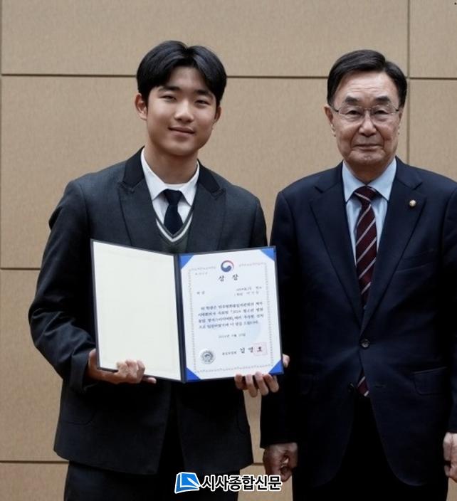 | Á¦ÁÖÁ¦ÀÏ°í ¹Ú¹ÎÁØ Çлý, ÅëÀϺÎÀå°ü»ó ¼ö»ó 2024 û¼Ò³â ÆòÈÅëÀÏ ¿µ¾î½ºÇÇÄ¡´ëȸ¼ ¼ö»ó |