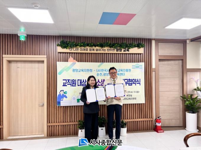 [½Ã»çÁ¾ÇսŹ® = Àå¹Î±Ô ±âÀÚ] ±¤¾ç±³À°Áö¿øÃ»(±³À°Àå ±è¿©¼±)Àº 11¿ù 27ÀÏ ±¤¾ç±³À°Áö¿øÃ» ±³À°Àå½Ç¿¡¼ Çѱ¹½Ã¹Î¾ÈÀü±³À°ÁøÈï¿ø ¼øÃµ¡¤±¤¾ç¾ÈÀü±³À°¼¾ÅÍ¿Í ¾÷¹«Çù¾àÀ» ü°áÇß´Ù.