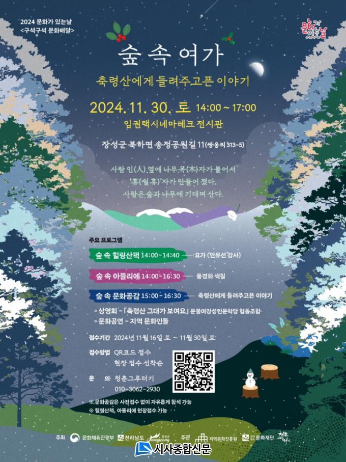 ¹®ÈüÀ°°ü±¤ºÎ, Àü¶ó³²µµ, À强±ºÀÌ ÁÖÃÖÇϰí Áö¿ª¹®ÈÁøÈï¿ø, Àü³²¹®ÈÀç´Ü, À强Áö¿ª û³â´Üü ¡®Ã»Ãá±×·çÅͱ⡯°¡ ÁÖ°üÇÏ´Â ¡®½£¼Ó¿©°¡¡¯´Â Ãà·É»êÀ» ¹«´ë·Î ÆîÃÄÁö´Â ¹®ÈÇà»ç´Ù. 6¿ù 1ÀÏ Ã¹ ÀÏÁ¤À» ½ÃÀÛÀ¸·Î ±è¿ëÅà ½ÃÀÎ, ÃÖÁø¿ì ÀÛ°¡ µîÀÌ ´Ù³à°£ ¡®½£¼ÓºÏÅäÅ©¡¯¿Í Çϸ², ¾ÈÇü¼ö Æ®¸®¿À µî ¹ÂÁö¼ÇµéÀÌ °ø¿¬À» ¸ÃÀº ¡®½£¼ÓÀ½¾Çȸ¡¯°¡ ¹æ¹®°´µé¿¡°Ô ¸¹Àº »ç¶ûÀ» ¹Þ¾Ò´Ù.