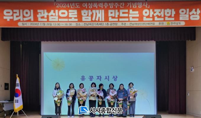 ¿©¼ºÆø·ÂÃß¹æÁÖ°£ ±â³äÇà»ç´Â Àü³²¿©¼ºÀαǴÜü¿¬ÇÕ(ȸÀå ±è¼ö¾Æ)¿¡¼ ÁøÇàÇϰí Àü³²µµ, Àü³²µµÀÇȸ, °ü·Ã ¿©¼ºÆø·Â¹æÁö½Ã¼³(°¡Á¤Æø·Â¡¤¼ºÆø·Â¡¤¼º¸Å¸Å µî) °ü°èÀÚ¿Í ¿©¼ºÆø·Â¹æÁöÀ§¿ø, ½Ã±º °ø¹«¿ø, À¯°ü±â°ü µî 200¿© ¸íÀÌ Âü¼®Çß´Ù.
