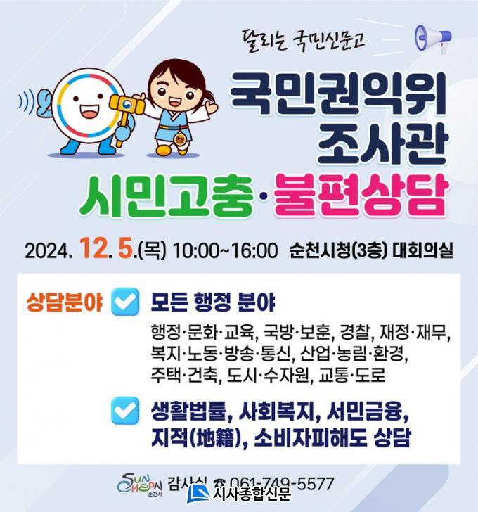 | ¼øÃµ½Ã, ±ÇÀÍÀ§ Á¶»ç°ü ½Ã¹Î°íÃæ ºÒÆí»ó´ã ¡°´Þ¸®´Â ±¹¹Î½Å¹®°í¡± ¿î¿µ ±¹¹Î±ÇÀÍÀ§¿øÈ¸ Á¶»ç°üÀÌ ½Ã¹Î°ú Á÷Á¢ ¼ÒÅëÇÏ´Â ÇöÀå ¼ºñ½º Á¦°ø |