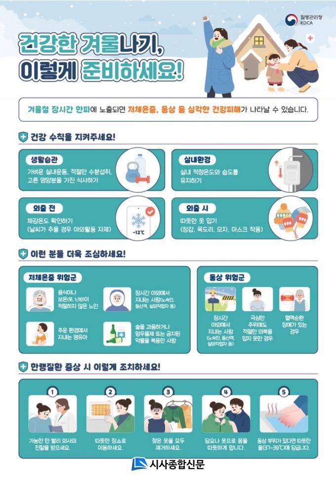 ÇÑ·©Áúȯ ¿¹¹æ¼öÄ¢Àº ¡ã¿ÜÃâ Àü ³¯¾¾ Á¤º¸¸¦ È®ÀÎÇØ ÇÑÆÄ ½Ã ¾ß¿ÜȰµ¿ ÀÚÁ¦ ¡ã¿ÜÃ⠽à ¾ãÀº ¿Ê °ãÃÄ ÀÔ°í, Àå°©¡¤¸ñµµ¸®¡¤¸ðÀÚ¡¤¸¶½ºÅ© Âø¿ë ¡ãÆò¼Ò °¡º¿î ½Ç³»¿îµ¿, ÀûÀýÇÑ ¼öºÐ ¹× ¿µ¾çºÐ ¼·Ãë ¡ã½Ç³» ÀûÁ¤ ¿Âµµ ¹× ½Àµµ À¯Áö µîÀÌ´Ù.