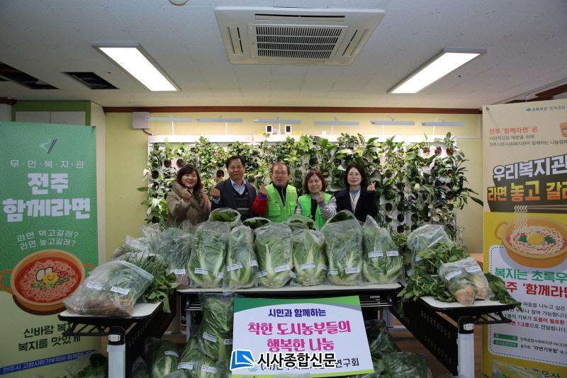 ÀüÁֽóó¾÷±â¼ú¼¾ÅÍ(¼ÒÀå °¼¼±Ç)´Â 3ÀÏ µµ½Ã³ó¾÷Àü¹®°¡·Î ±¸¼ºµÈ (»ç)ÀüÁֽõµ½Ã³ó¾÷¿¬±¸È¸(ȸÀå ¿À¿µÈ¯) ȸ¿øµéÀÌ ÅԹ翡¼ Ű¿î ¹èÃß 100Æ÷±â µî À¯±â³ó ä¼Ò¸¦ ¡®ÀüÁÖÇÔ²²¶ó¸é¡¯ ¼öÇà±â°üÀÎ ÀüºÏÁ¾ÇÕ»çȸº¹Áö°ü(°üÀå ÇѼ±Èñ)¿¡ ±âÁõÇß´Ù°í ¹àÇû´Ù.
