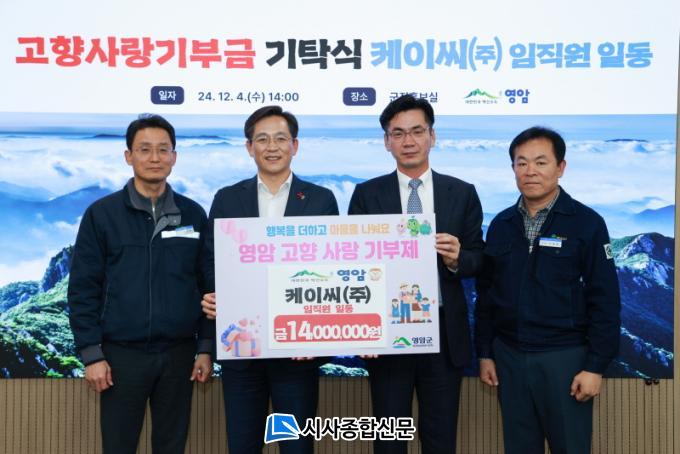 [½Ã»çÁ¾ÇսŹ® = ¿À½ÂÅà ±âÀÚ] ¹ÚÁÖ¿ë ÄÉÀ̾¾(ÁÖ) ´ëÇ¥ÀÌ»ç¿Í ÀÓÁ÷¿øÀÌ 4ÀÏ ¿µ¾Ï±º¿¡ °íÇâ»ç¶û±âºÎ±Ý 1,400¸¸¿øÀ» ±âŹÇß´Ù.