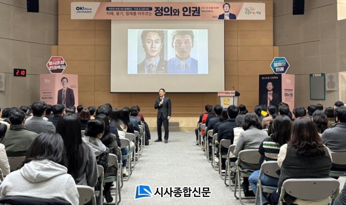 ´ëÇѹα¹À» ´ëÇ¥ÇÏ´Â ÀαǺ¯È£»ç·Î Ȱµ¿ ÁßÀÎ ¹ÚÁØ¿µ º¯È£»ç¸¦ ÃÊÃ»ÇØ, ¡®ÁöÇý, ¿ë±â, ÀýÁ¦¸¦ ¾Æ¿ì¸£´Â Á¤ÀÇ¿Í Àαǡ¯ ÁÖÁ¦ °¿¬À» Çß´Ù. ¿©·¯ »çȸÀû »ç°Ç¿¡¼ Áß¿äÇÑ ¿ªÇÒÀ» ÇØ¿Â °æÇèÀ» ¹ÙÅÁÀ¸·Î ¹ý°ú Á¤ÀÇ, Àαǿ¡ ´ëÇÑ Áø¼ÖÇÑ »ý°¢À» Ç®¾î³»¸ç ÀαÇÀÇ Àǹ̸¦ ´Ù½Ã Çѹø µ¹¾Æº¸´Â ½Ã°£À¸·Î ÁøÇàµÆ´Ù.