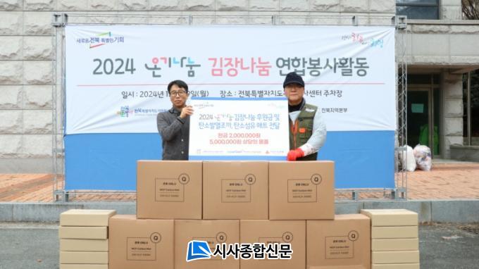 ¾Õ¼ Çѱ¹Åº¼Ò»ê¾÷ÁøÈï¿ø°ú Çѱ¹Àü±â¾ÈÀü°ø»ç ÀüºÏº»ºÎ´Â ÀüºÏƯº°ÀÚÄ¡µµ ÀÚ¿øºÀ»ç¼¾ÅÍ¿¡ ±èÀå¿ë ÀýÀÓ¹èÃß¿Í ¾ç³ä µî¿¡ ´ëÇÑ ±¸ÀÔ ºñ¿ë ÃÑ 300¸¸¿øÀ» ÈÄ¿øÇßÀ¸¸ç, À̳¯ ¸¸µç ±èÄ¡¸¦ »õÅ͹Π50°¡±¸¿¡ °¢°¢ Àü´ÞÇß´Ù.