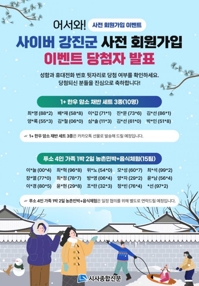 ±ºÀº À̹ø À̺¥Æ®¿¡¼ Ãß÷À» ÅëÇØ Á¦°øµÈ °ÁøÀÇ Æ¯»ê¹° 1+ ÇÑ¿ì ¼¼Æ®(10¸í)¿Í °ÁøÀÇ ´ëÇ¥ ³óÃÌ ¹Î¹Ú üÇè ÇÁ·Î±×·¥ÀΠǪ¼Ò(FUSO) 1¹Ú2ÀÏ Ã¼Çè±Ç(15ÆÀ)À» ´ç÷Àڵ鿡°Ô Àü´ÞÇÒ ¿¹Á¤ÀÌ´Ù. ´ç÷ÀÚ´Â °Áø±ºÃ» ȨÆäÀÌÁö °øÁö»çÇ׿¡¼ À̸¦ È®ÀÎÇÒ ¼ö ÀÖ´Ù.