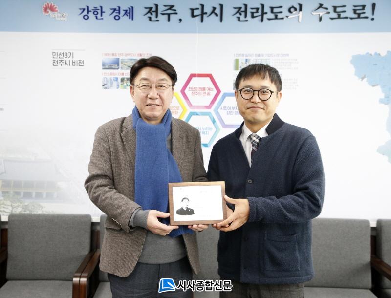 ¿ì¹ü±â ÀüÁÖ½ÃÀåÀº 11ÀÏ ÀüÁÖ½ÃÀå½Ç¿¡¼ ¡®Á¦4´ë ÀüÁÖ¸í¿¹°üÂû»ç¡¯·Î À§ÃËµÈ Àü±æ¹è ÆòÈ»çȸº¹Áö°üÀå¿¡°Ô À§ÃËÀåÀ» ¼ö¿©Çß´Ù.