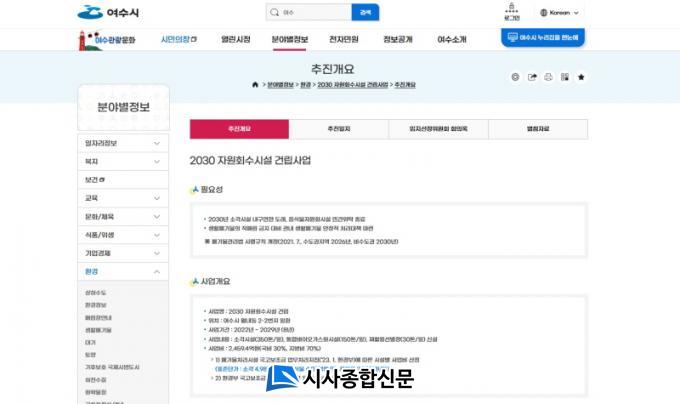| ¿©¼ö½Ã, ¡®2030 ÀÚ¿øÈ¸¼ö½Ã¼³ °Ç¸³»ç¾÷¡¯ ÃßÁø »óȲ °ø°³ ¼Ò°¢½Ã¼³¡¤À½½Ä¹°Ã³¸®½Ã¼³¡¤ÀçȰ¿ë¼±º°½Ã¼³ ¼³Ä¡ Àû¹ýÇÏ°Ô ÃßÁø