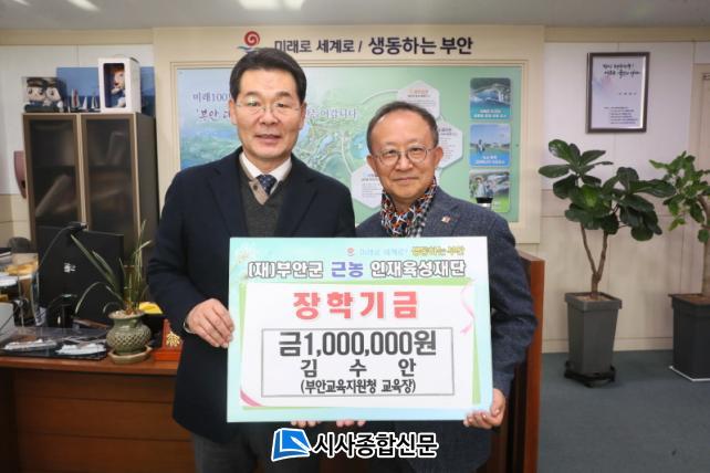 [½Ã»çÁ¾ÇսŹ® = ¿À½ÂÅà ±âÀÚ] ±è¼ö¾È ºÎ¾È±³À°Áö¿øÃ» ±³À°ÀåÀº Áö¿ªÀÎÀçÀ°¼ºÀ» À§ÇÑ ºÎ¾È±º ±Ù³óÀÎÀçÀ°¼ºÀç´Ü »ç¾÷¿¡ µ¿ÂüÇϰíÀÚ ÀåÇÐ±Ý 100¸¸¿øÀ» ±âŹÇß´Ù.