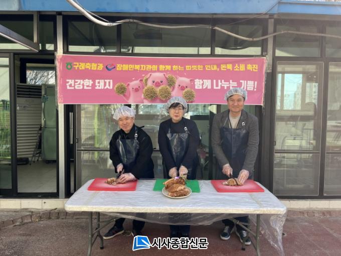 Çà»ç¿¡¼´Â ±¸·ÊÃàÇù¿¡¼ Á¦°øÇÑ ½Å¼±Çϰí ǰÁú ÁÁÀº µÅÁö°í±â¸¦ ÀÌ¿ëÇÏ¿© ¼öÀ° ¿ä¸®¸¦ ÁغñÇØ, ÀÌ¿ëÀå¾ÖÀε鿡°Ô ¸ÀÀÖ°í ¸Ô±â ½¬¿î Á¡½ÉÀ» Á¦°øÇÏ¿´½À´Ï´Ù. ¸¹Àº ÀÌ¿ëÀå¾ÖÀεéÀÌ µÅÁö°í±â ¿ä¸®¸¦ Áñ±â¸ç, ÇູÇÑ ½Ã°£À» º¸³ÂÀ¸¸ç, À̸¦ ÅëÇØ µÅÁö°í±â ¼Òºñ ÃËÁø»Ó¸¸ ¾Æ´Ï¶ó Áö¿ª ³ó°¡ÀÇ ¾î·Á¿òÀ» µ½°í, Áö¿ª °æÁ¦ Ȱ¼ºÈ¿¡µµ ±â¿©ÇÏ´Â ÀǹÌÀÖ´Â ½Ã°£À̾ú½À´Ï´Ù.