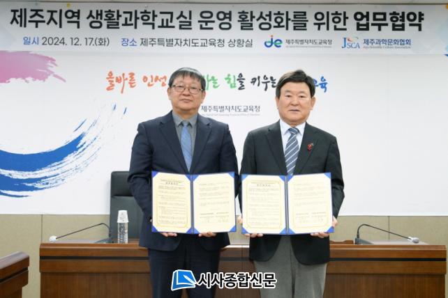 [½Ã»çÁ¾ÇսŹ® = °í¼º¹Î ±âÀÚ] Á¦ÁÖÆ¯º°ÀÚÄ¡µµ±³À°Ã»(±³À°°¨ ±è±¤¼ö)°ú Á¦ÁÖ°úÇй®ÈÇùȸ(´ëÇ¥ÀÌ»ç °í¿ëö)Àº Áö³ 17ÀÏ µµ±³À°Ã» »óȲ½Ç¿¡¼ Á¦ÁÖÁö¿ª »ýȰ°úÇб³½Ç ¿î¿µ Ȱ¼ºÈ¸¦ À§ÇÑ Çù·Â üÁ¦ ±¸ÃàÀ» À§ÇØ ¾÷¹«Çù¾àÀ» ü°áÇÏ¿´´Ù.
