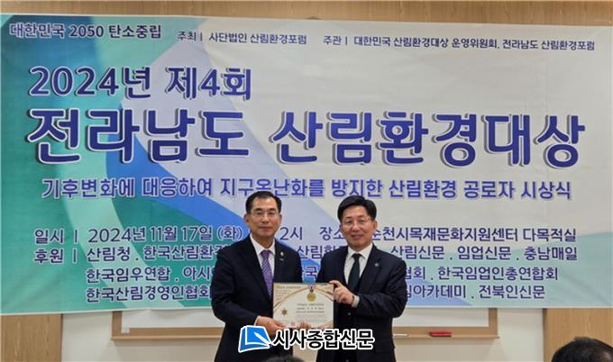 [½Ã»çÁ¾ÇսŹ® = ¿À½ÂÅà ±âÀÚ] Àü³²µµÀÇȸ ÃÖº´¿ë ÀÇ¿ø(´õºÒ¾î¹ÎÁִ硤¿©¼ö5)ÀÌ 12¿ù 17ÀÏ (»ç)»ê¸²È¯°æÆ÷·³ÀÌ ÁÖÃÖÇÏ´Â ¡®2024³â Àü¶ó³²µµ »ê¸²È¯°æ´ë»ó¡¯ ½Ã»ó½Ä¿¡¼ ÀÔ¹ýºÎ¹® ´ë»óÀ» ¼ö»óÇß´Ù.