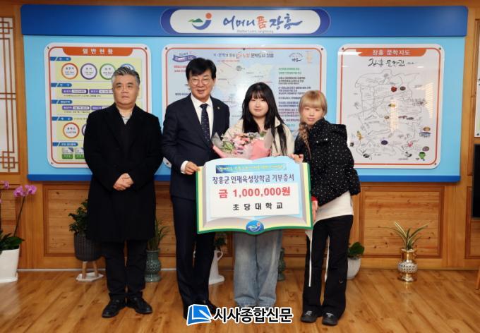 [½Ã»çÁ¾ÇսŹ® = ¿À½ÂÅà ±âÀÚ] (Àç)ÀåÈﱺÀÎÀçÀ°¼ºÀåÇÐȸ´Â 19ÀÏ ÃÊ´ç´ëÇб³¿¡¼ ¼Ûȯ ±³¼ö ¿Ü 2¸íÀÇ ÇлýµéÀÌ ÀåÈﱺûÀ» ¹æ¹®ÇØ ÀåÇÐ±Ý 1¹é¸¸ ¿øÀ» Àü´ÞÇß´Ù°í ¹àÇû´Ù.