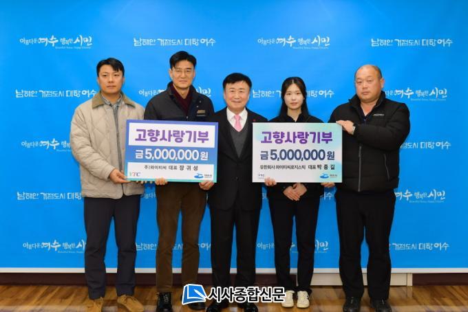 À̳¯ µÎ ȸ»çÀÇ ÀÓÁ÷¿øµéÀÌ ¿©¼ö½Ã¸¦ ¹æ¹®ÇØ Áö¿ª»çȸ¸¦ ÇâÇÑ µÎ ´ëÇ¥ÀÇ µû¶æÇÑ °ü½É°ú ³ª´®ÀÇ ¶æÀ» Àü´ÞÇß´Ù.
