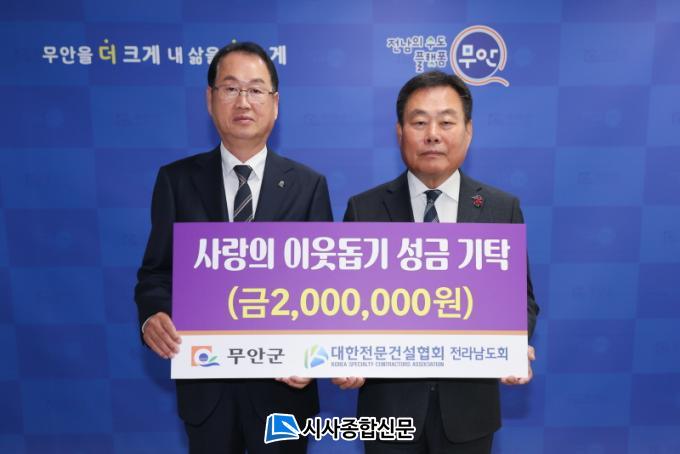 | ´ëÇÑÀü¹®°Ç¼³Çùȸ Àü¶ó³²µµÈ¸, ¹«¾È±º¿¡ ÀÌ¿ôµ½±â ¼º±Ý 200¸¸¿ø ±âŹ |
