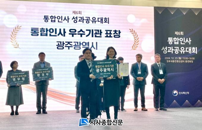 [½Ã»çÁ¾ÇսŹ® = ¿À½ÂÅà ±âÀÚ] ±¤ÁÖ±¤¿ª½Ã(½ÃÀå °±âÁ¤)´Â 23ÀÏ ÀλçÇõ½Åó ÁÖ°ü ¡®Á¦6ȸ ÅëÇÕÀÎ»ç ¼º°ú°øÀ¯´ëȸ¡¯¿¡¼ »çȸÅëÇÕ ¹× ±ÕÇüÀÎ»ç µîÀÇ ¼º°ú¿¡ µû¶ó ¡®ÅëÇÕÀÎ»ç ¿ì¼ö±â°ü¡¯À¸·Î ¼±Á¤µÅ ÀλçÇõ½ÅóÀå ǥâÀ» ¹Þ¾Ò´Ù.