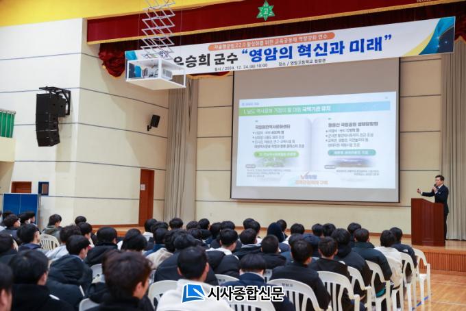 [½Ã»çÁ¾ÇսŹ® = ¿À½ÂÅà ±âÀÚ] ¿ì½ÂÈñ ¿µ¾Ï±º¼ö°¡ 24ÀÏ ¿µ¾Ï°íµîÇб³ üÀ°°ü¿¡¼ ¿µ¾ÏÁß¡¤°í Çлý°ú ±³Á÷¿ø 300¿© ¸íÀÌ Âü¼®ÇÑ °¡¿îµ¥, ¡®¿µ¾ÏÀÇ Çõ½Å°ú ¹Ì·¡¡¯¸¦ ÁÖÁ¦·Î Ưº°°¿¬Çß´Ù.
