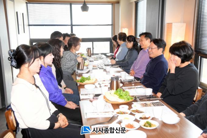 ° ½ÃÀåÀº À̳¯ ½Ãû Àα٠ÇÑ ½Ä´ç¿¡¼ ±¸³»½Ä´ç Á÷¿øµé°ú ¿ÀÂùÇß´Ù. ° ½ÃÀåÀº ¸ÅÀÏ ¼ö¹é¸íÀÇ Á÷¿øµé¿¡°Ô ¾çÁúÀÇ ½Ä»ç Á¦°øÀ» À§ÇØ ¹¬¹¬È÷ ÀÏÇÏ´Â Á÷¿øµé¿¡°Ô ¡°¿©·¯ºÐµéÀÌ ¸ÅÀÏ °í»ýÇØÁֽŠ´öºÐ¿¡ µû¶æÇÑ ¹ä ¸ÀÀÖ°Ô Àß ¸Ô°í ÀÖ´Ù¡±¸ç °¨»ç Àλ縦 ÀüÇß´Ù.