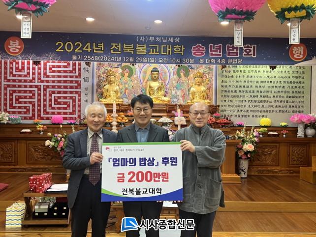 [½Ã»çÁ¾ÇսŹ® = ¿À½ÂÅà ±âÀÚ] (»ç)ºÎó´Ô¼¼»ó(ÀÌ»çÀå ¹éÁرâ) ºÎ¼³ ÀüºÏºÒ±³´ëÇÐ(ÇÐÀå ÀÌⱸ)Àº Áö³ 29ÀÏ ¡®¼Û³â¹ýȸ¡¯¸¦ ±â³äÇØ ÀüÁֽÿ¡ 200¸¸ ¿øÀÇ ¼º±ÝÀ» Àü´ÞÇß´Ù.