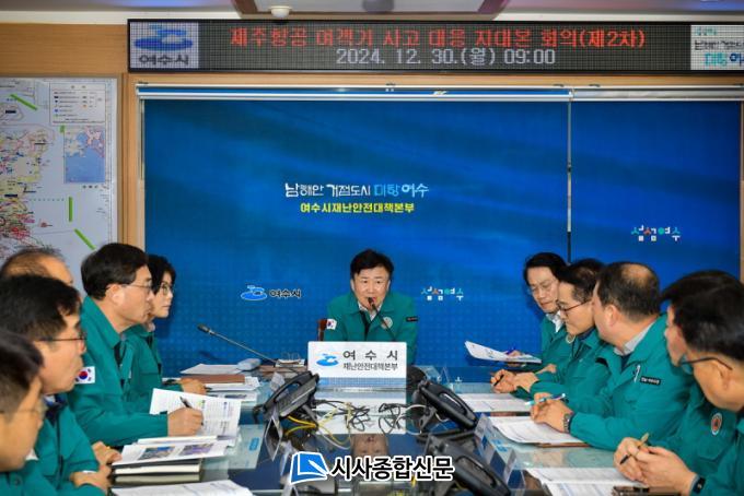 | Á¤±â¸í ¿©¼ö½ÃÀåÀÌ 30ÀÏ ¿ÀÀü Á¦ÁÖÇ×°ø ¿©°´±â »ç°í °ü·Ã 2Â÷ Áö¿ªÀç³¾ÈÀü´ëÃ¥º»ºÎ ȸÀǸ¦ ÁÖÀç, ¡°Èñ»ýÀÚ 5¸í¿¡ ´ëÇÑ Àå·Ê µî Áö¿ø¿¡ ÃÖ¼±À» ´ÙÇ϶󡱰í Áö½ÃÇß´Ù. |