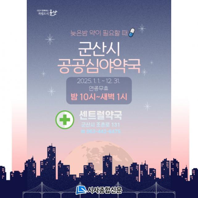 °ø°ø½É¾ß¾à±¹Àº ¿ÀÈÄ 10½ÃºÎÅÍ ´ÙÀ½³¯ »õº® 1½Ã±îÁö 365ÀÏ(¿¬Áß¹«ÈÞ) ¿î¿µµÇ´Â ¾à±¹ÀÌ´Ù. À̸¦ ÅëÇØ ½Ã¹ÎµéÀÌ ½É¾ß½Ã°£´ë¿¡ ÀǾàǰÀ» ±¸¸ÅÇÒ ¼ö ÀÖÀ¸¸ç, ¾à»ç¿ÍÀÇ »ó´ãÀ» ÅëÇØ ¾ÈÀüÇÏ°Ô ¾àÀ» º¹¿ëÇÒ ±âȸ°¡ Á¦°øµÈ´Ù.