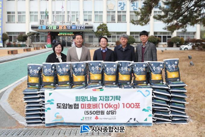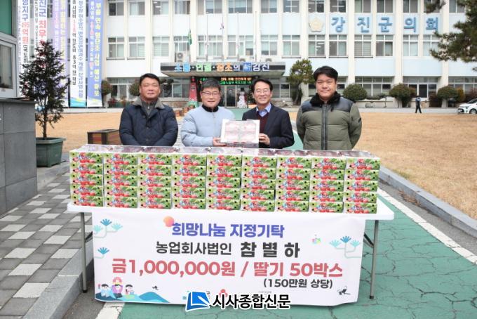 °Áø µµ¾Ï³óÇù(Á¶ÇÕÀå À±Àç¼±)Àº 550¸¸ ¿ø »ó´çÀÇ ¹ÌÈ£º 100Æ÷, °Áøµþ±â¼öÃ⿬±¸È¸(´ëÇ¥ ¿À¸í¼®)´Â Çö±Ý 100¸¸ ¿ø, ³ó¾÷ȸ»ç¹ýÀÎ Âüº°ÇÏ(´ëÇ¥ ¿À¸í¼®)´Â Çö±Ý 100¸¸ ¿ø°ú µþ±â 50¹Ú½º¸¦ ¾î·Á¿î ÀÌ¿ô°ú »çȸº¹Áö½Ã¼³À» À§ÇØ ½á´Þ¶ó°í °Áø±º¿¡ ±âŹÇß´Ù.