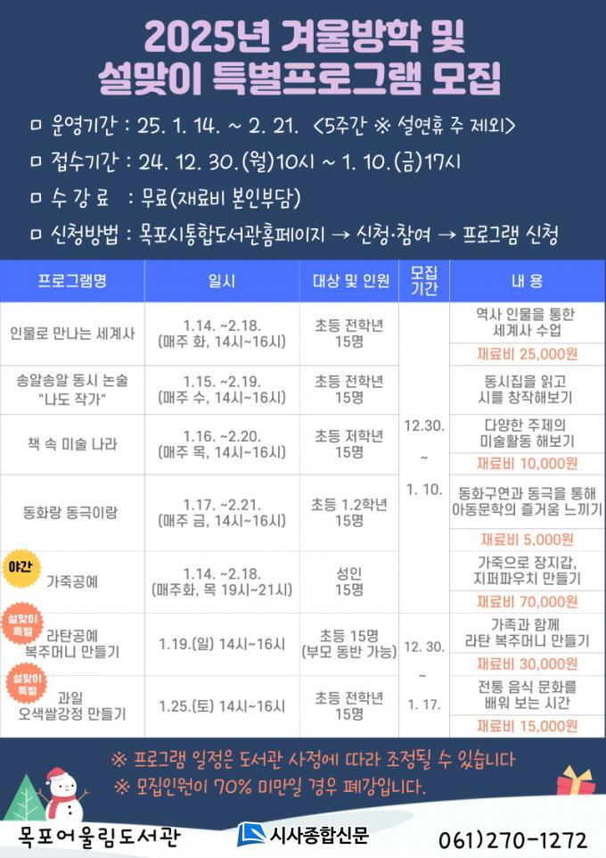 [½Ã»çÁ¾ÇսŹ® = ¿À½ÂÅà ±âÀÚ] ¸ñÆ÷¾î¿ï¸²µµ¼°üÀº °Ü¿ï¹æÇÐÀ» ¸Â¾Æ 1¿ùºÎÅÍ 2¿ù±îÁö 5ÁÖ°£ 7°³ ÇÁ·Î±×·¥À» °³¼³Çϰí Á־߰£ ¹× ¼³¸ÂÀÌ Æ¯º°ÇÁ·Î±×·¥À¸·Î ³ª´©¾î ´Ùä·Ó°Ô ¿î¿µÇÑ´Ù.