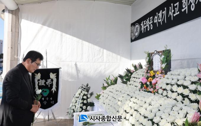 [½Ã»çÁ¾ÇսŹ® = ¿À½ÂÅà ±âÀÚ] ÇÔÆò±º(±º¼ö ÀÌ»óÀÍ)ÀÌ Áö³ 29ÀÏ ¹ß»ýÇÑ Á¦ÁÖÇ×°ø ¿©°´±â »ç°í Èñ»ýÀÚµéÀÇ ¸íº¹À» ±â¿øÇϰí, À¯°¡Á·µé¿¡°Ô ±íÀº ¾ÖµµÀÇ ¸¶À½À» ÀüÇϱâ À§ÇØ 30ÀÏ ÇÔÆò±ºÃ» °Ç¼³±³Åë°ú ¾Õ(º»°ü 1Ãþ)¿¡ ÇÕµ¿ºÐÇâ¼Ò¸¦ ¼³Ä¡Çß´Ù.