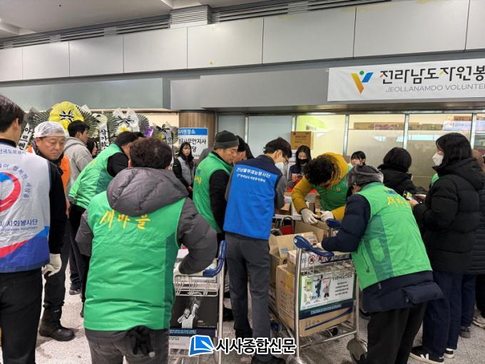 [½Ã»çÁ¾ÇսŹ® = ¿À½ÂÅà ±âÀÚ] Á¦ÁÖÇ×°ø ¿©°´±â »ç°í ÇöÀå¿¡ Àü±¹ °¢ÁöÀÇ ¿ÂÁ¤ÀÌ ´äÁöÇÑ °¡¿îµ¥, ¿©¼ö½Ã»õ¸¶À»È¸ ȸ¿ø 45¸íÀÌ ÇöÀåÀ» ã¾Æ µµ¿òÀÇ ¼Õ±æÀ» ´õÇß´Ù.