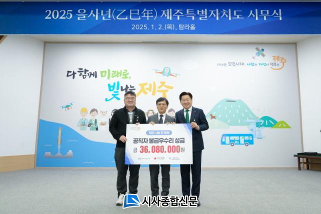 ¿À¿µÈÆ Áö»ç¿Í µµ °ø¹«¿ø³ëµ¿Á¶ÇÕ ¿ÀÅ层 À§¿øÀåÀº Á÷¿øµéÀÇ ¸ð±ÝÀ¸·Î ¸¶·ÃµÈ ºÀ±Þ¿ì¼ö¸® ¼º±Ý 3,608¸¸ ¿øÀ» 2ÀÏ ¿ÀÀü µµÃ» ޶óȦ¿¡¼ ¿¸° ¡®¡¯25³â Á¦ÁÖµµÃ» ½Ã¹«½Ä¡¯¿¡¼ Á¦ÁÖ »çȸº¹Áö°øµ¿¸ð±Ýȸ(ȸÀå °Áö¾ð)¿¡ Àü´ÞÇß´Ù.