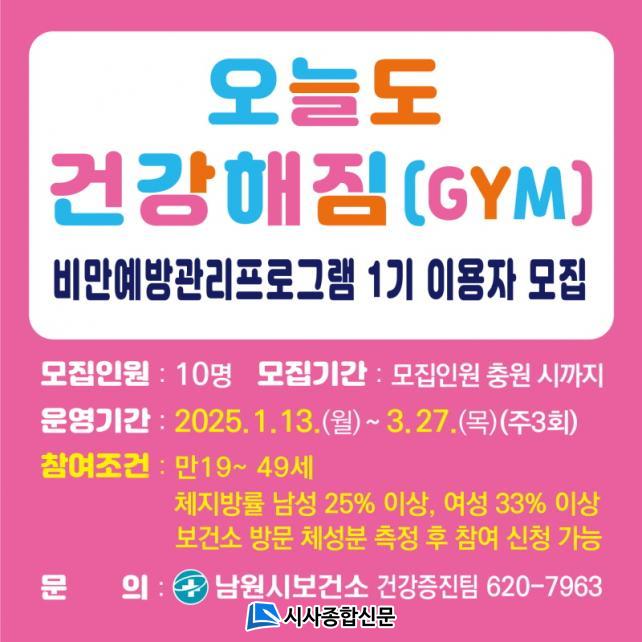 »ç¾÷ Âü¿©¸¦ Èñ¸ÁÇϰųª ÀÚ¼¼ÇÑ ¹®ÀÇ »çÇ×Àº ³²¿ø½Ãº¸°Ç¼Ò ÁֹΰǰÁõÁø¼¾ÅÍ ¹æ¹® ¶Ç´Â ÀüÈ(¢Ï063-620-7963)ÇÏ¸é µÈ´Ù.