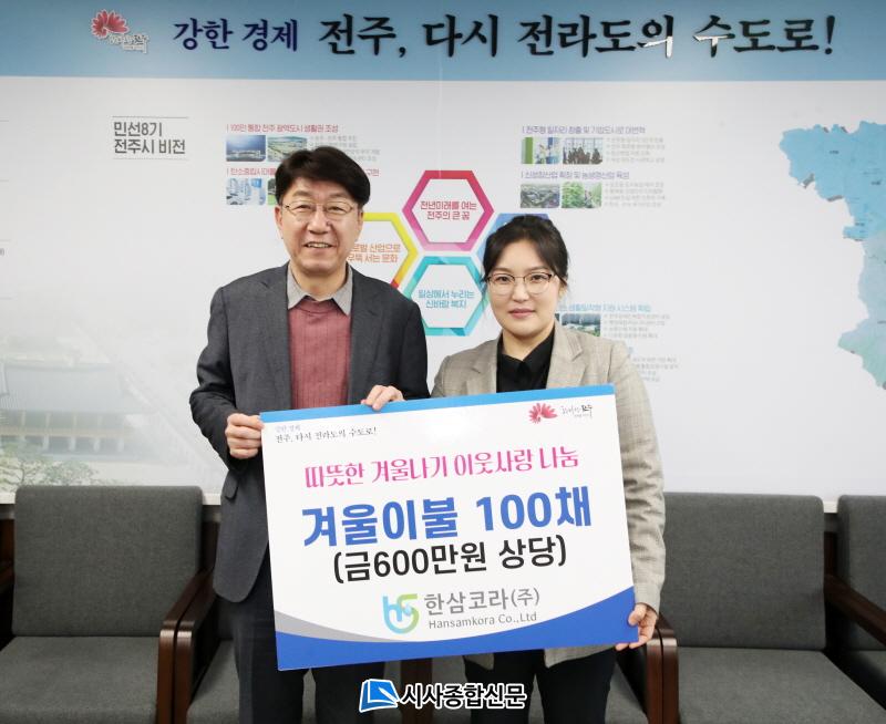 [½Ã»çÁ¾ÇսŹ® = ¿À½ÂÅà ±âÀÚ] ¼öÁú¡¤È¯°æ¿¬±¸ Àü¹®±â¾÷ÀÎ ÇÑ»ïÄÚ¶ó(ÁÖ)´Â 6ÀÏ ÀüÁÖ½ÃûÀ» ã¾Æ ÁÖÀ§ÀÇ ¾î·Á¿î ÀÌ¿ôµé¿¡°Ô Àü´ÞÇØ´Þ¶ó¸ç °Ü¿ïÀÌºÒ 100ä(600¸¸ ¿ø »ó´ç)¸¦ ±âŹÇß´Ù.