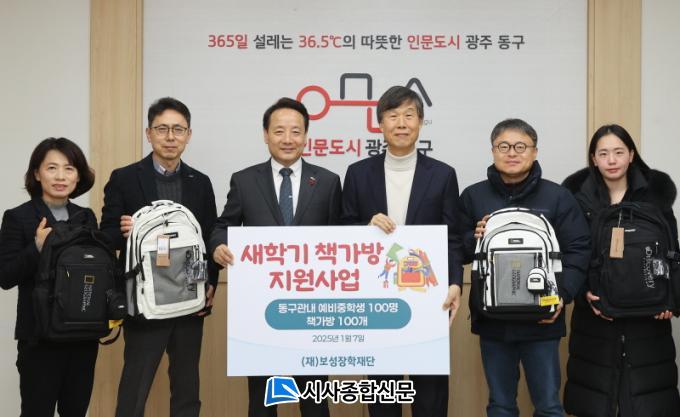 [½Ã»çÁ¾ÇսŹ® = ¿À½ÂÅà ±âÀÚ] ±¤ÁÖ µ¿±¸(ûÀå ÀÓÅÃ)´Â ¿À´Â 3¿ù ÁßÇб³ ÀÔÇÐÀ» ¾ÕµÐ Àú¼Òµæ °¡Á¤ ¾Æµ¿µéÀÇ »õ Çб⠻õ Ãâ¹ßÀ» À§ÇØ (Àç)º¸¼ºÀåÇÐÀç´ÜÀÇ ÈÄ¿øÀ¸·Î Ã¥°¡¹æ 100°³¸¦ Àü´ÞÇÏ¸ç ¾ÆÀ̵éÀÇ ²ÞÀ» ÀÀ¿øÇß´Ù°í ¹àÇû´Ù.