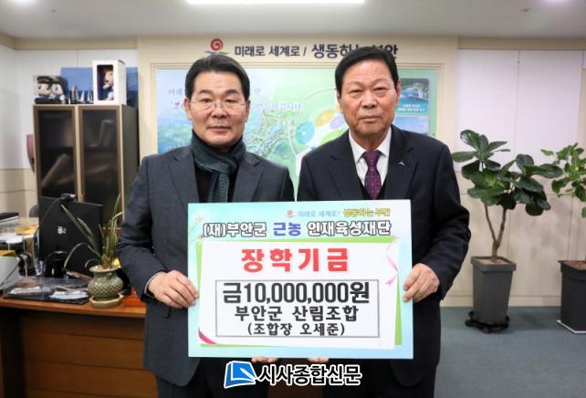 [½Ã»çÁ¾ÇսŹ® = ¿À½ÂÅà ±âÀÚ] ºÎ¾È±º»ê¸²Á¶ÇÕ(Á¶ÇÕÀå ¿À¼¼ÁØ)Àº Áö³ 7ÀÏ ºÎ¾È±º ±Ù³óÀÎÀçÀ°¼ºÀç´ÜÀ» ¹æ¹®ÇØ Áö¿ª ÀÎÀç À°¼ºÀ» À§ÇÑ ÀåÇÐ±Ý 1000¸¸¿øÀ» ÄèôÇß´Ù.