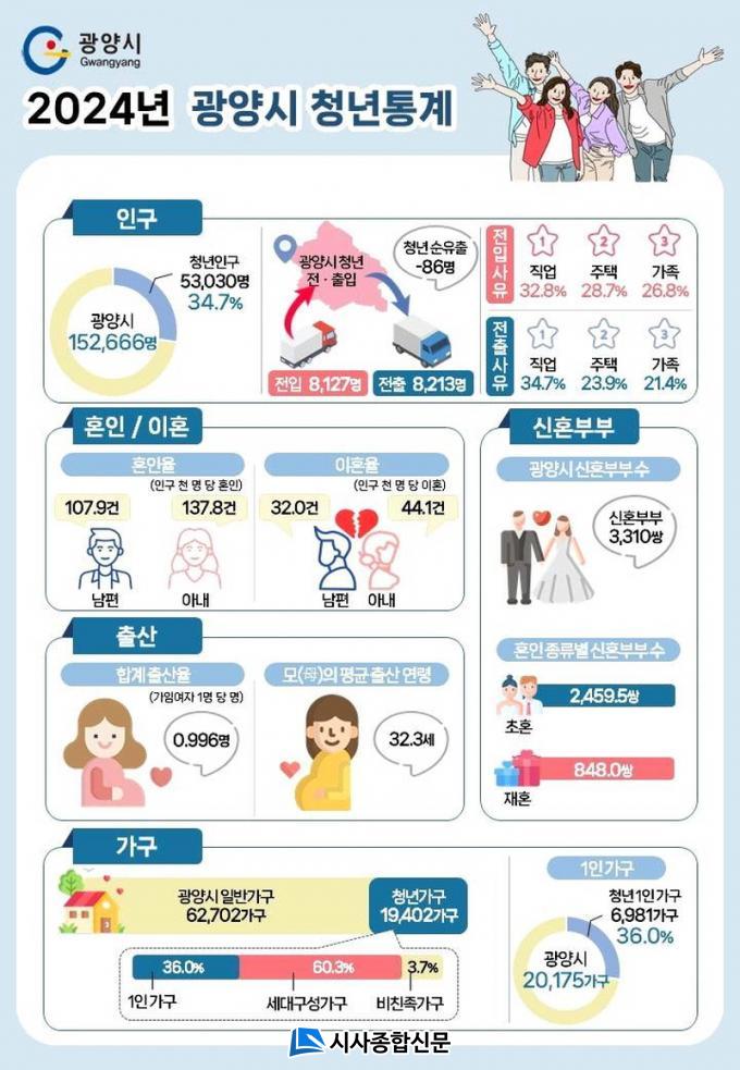 Åë°èÁ¶»ç¿¡ µû¸£¸é ±¤¾ç½Ã 19¡45¼¼ ÀÌÇÏ Ã»³âÀα¸´Â 53,030¸íÀ¸·Î ½Ã ÃÑÀα¸ÀÇ 34.7%¸¦ Â÷ÁöÇß´Ù. ±¤¾ç½Ã û³âÀα¸ ºñÀ²Àº Àü³² 22°³ ½Ã±º °¡¿îµ¥ °¡Àå ³ô¾ÒÀ¸¸ç Àü³² û³âÀα¸ ºñÀ²(28.8%)º¸´Ù 6% ³ô¾Ò°í ¿©¼ö½Ã, ¼øÃµ½Ãº¸´Ù °¢°¢ 3.1%, 0.5%°¡ ³ô¾Ò´Ù.