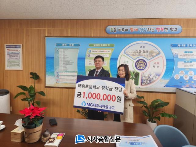 [½Ã»çÁ¾ÇսŹ® = °í¼º¹Î ±âÀÚ] ÅÂÈïÃʵîÇб³(±³Àå ¿ÀÁ¤¹Ì)´Â Áö³ 7ÀÏ ÅÂÈï»õ¸¶À»±Ý°í(ÀÌ»çÀå ¾ç¼º¹ü)·ÎºÎÅÍ Á¹¾÷»ý ´ë»ó ÀåÇÐ±Ý 100¸¸¿øÀ» ±âŹ¹Þ¾Ò´Ù.