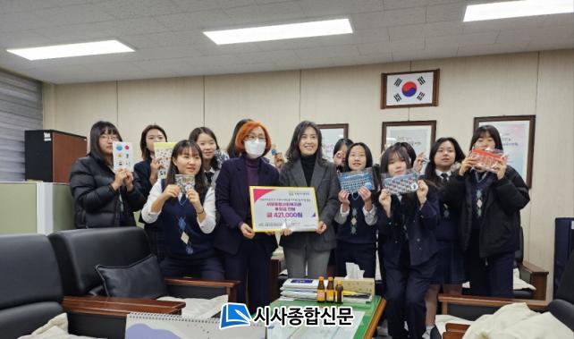 [½Ã»çÁ¾ÇսŹ® = °í¼º¹Î ±âÀÚ] ÇѸ²¿©ÀÚÁßÇб³(±³Àå ¾çÁ¦¼ø) ÇлýÀÚġȸ °¡¿Â´©¸®¿Í 3Çгâ ÇлýµéÀÌ ÇÔ²² ÀÚġȰµ¿ ¹× ¸¶À»±³À° °á°ú¹°À» Çø®¸¶ÄÏ¿¡¼ ÆÇ¸ÅÇÏ¿© Á¶¼ºµÈ ¼öÀÍ±Ý Àü¾× 42¸¸1000¿øÀ» Áö³ 8ÀÏ Áö¿ª»çȸ º¹Áö±â°üÀÎ Á¦Áֽà ¼ºÎÁ¾ÇÕ»çȸº¹Áö°ü¿¡ Àü´ÞÇÏ¿´´Ù.