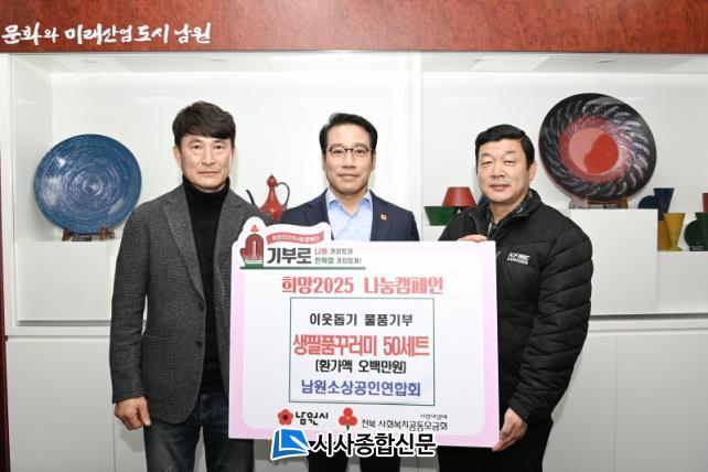 ÃÖ°æ½Ä ³²¿ø½ÃÀåÀº ¡°¾î·Á¿î °æÁ¦ »óȲ ¼Ó¿¡¼µµ ³ª´®ÀÇ ¶æÀ» ½ÇÃµÇØ ÁֽŠ¼Ò»ó°øÀο¬ÇÕȸ¿¡ ±íÀÌ °¨»çµå¸°´Ù¡±¶ó¸ç, ¡°À̹ø ±âºÎ´Â ¿ì¸® ÀÌ¿ôµé¿¡°Ô Å« ÈûÀÌ µÉ »Ó¸¸ ¾Æ´Ï¶ó Áö¿ª»çȸ¿¡ ÈÆÈÆÇÑ ¿Â±â¸¦ ÀüÇØÁÖ¾ú´Ù. ¾ÕÀ¸·Îµµ ³ª´®°ú »ó»ýÀÇ Á¤½ÅÀ» À̾´Â ³²¿ø½Ã¸¦ ¸¸µé¾î°¡´Â µ¥ ÃÖ¼±À» ´ÙÇϰڴ١±¶ó°í ¸»ÇÏ¸ç °¨»çÀÇ ¸¶À½À» ÀüÇß´Ù.