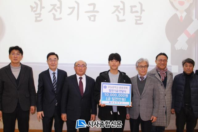 [½Ã»çÁ¾ÇսŹ® = °í¼º¹Î ±âÀÚ] ±ÍÀÏÁßÇб³ Ãѵ¿Ã¢È¸(ȸÀå °íÅ¿µ)´Â Áö³ 8ÀÏ Á¦72ȸ ±ÍÀÏÁßÇб³ Á¹¾÷½Ä¿¡ Âü°¡ÇØ ¹ßÀü±â±Ý 1000¸¸¿øÀ» Àü´ÞÇß´Ù.