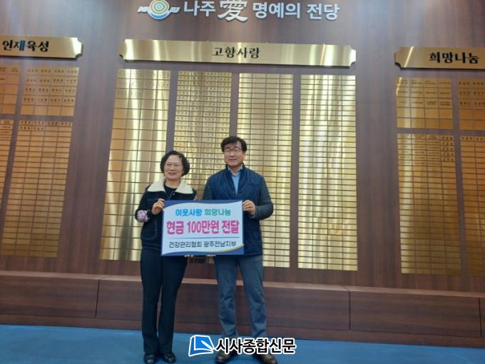 | Çѱ¹°Ç°°ü¸®Çùȸ ±¤ÁÖÀü³²ÁöºÎ, ³ªÁÖ½Ãû¿¡ »ç¶ûÀÇ ¼º±Ý Àü´Þ |