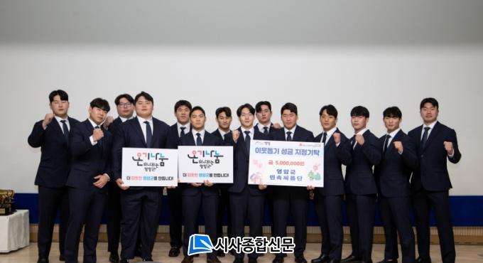 ¾¾¸§´ÜÀº ÀÌ·¸µí Áö¿ª»çȸ ¾ÈÆÆÀÇ ¼º¿ø¿¡ º¸´äÇÏ´Â Àǹ̷ΠÀÌ¿ôµ½±â ¼º±Ý 500¸¸¿øÀ» ¿µ¾Ï±º¿¡, ±è¹ÎÀç Àå»ç´Â ÀåÇÐ±Ý 1,000¸¸¿øÀ» (Àç)¿µ¾Ï±º¹Ì·¡±³À°Àç´Ü¿¡ ±âºÎÇϸç Çà»ç¸¦ ºû³Â´Ù.