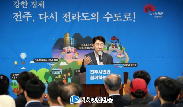 ¿ì¹ü±â ÀüÁÖ½ÃÀåÀº ¡°2025³â À»»ç³â »õÇØ¿¡´Â ´ë³»¿ÜÀûÀ¸·Î ¸÷½Ã È¥¶õ½º·¯¿î Á¤±¹ ¼Ó, À§±â¸¦ ±âȸ·Î ¸¸µå´Â ÇÑÇØ¸¦ ¸¸µé°Ú´Ù¡±¸é¼ ¡°Æ¯È÷ ¹Î»ý°æÁ¦ ȸº¹¿¡ ¾ÕÀå¼°í, ÀüÁִ뺯ÇõÀÇ ºñÀü°ú °èȹÀ» Â÷±ÙÂ÷±Ù ½ÇÇöÇØ °¡¸ç ½Ã¹ÎÀÌ Àϻ󿡼 ü°¨ÇÏ´Â »îÀÇ º¯È¸¦ ¸¸µé°Ú´Ù¡±°í °Á¶Çß´Ù.