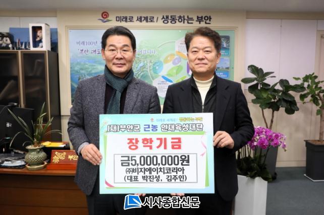 ºñÁö¿¡ÀÌÄ¡ÄÚ¸®¾Æ ¹ÚÁø¼º¡¤±èÁÖÀÎ ´ëÇ¥´Â ¡°ºÎ¾È±º ±Ù³óÀÎÀçÀ°¼ºÀç´ÜÀÇ ´ëÇб³ Àü Çгâ Àü Çб⠹ݰª µî·Ï±Ý Áö¿ø°ú ´ÙÀÚ³àÀåÇбÝ, Ư±âÀåÇÐ±Ý µî ÀåÇлç¾÷ ÃßÁø¿¡ Àû±Ø ³ë·ÂÇÏ´Â °Í¿¡ ¶æÀ» ÇÔ²² ÇϰíÀÚ ÀåÇбÝÀ» ±âŹÇÏ°Ô µÆ´Ù¡±¸ç ¡°Áö¿ª¿¡¼ ¹ÞÀº »ç¶ûÀ» Áö¿ªÀ¸·Î ȯ¿øÇÏ´Â ¸¶À½À¸·Î ¾ÕÀ¸·Îµµ ºÎ¾È±º ¹ßÀüÀ» À§ÇØ ÇÔ²² Çϰڴ١±°í ¸»Çß´Ù.