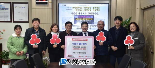 [½Ã»çÁ¾ÇսŹ® = ¿À½ÂÅà ±âÀÚ] ±èÁ¦½Ã(½ÃÀå Á¤¼ºÁÖ)´Â 20ÀÏ ±èÁ¦½Ã³ó½ÄǰÇùÀÇȸ(ȸÀå Á¶¼ºÃµ)°¡ Áö¿ª Àú¼ÒµæÃþ¿¡°Ô Àü´ÞÇØ´Þ¶ó¸ç ³ó½Äǰ°¡°øÇ° 100¼¼Æ®(500¸¸¿ø »ó´ç)¸¦ ±âŹÇß´Ù°í ¹àÇû´Ù.