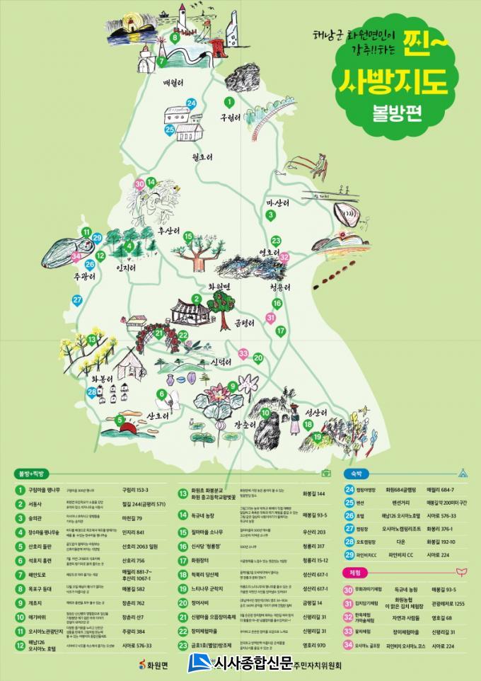 º¼¹æÆí¿¡¼´Â È¿ø¸éÀÇ ´ëÇ¥ °ü±¤ÁöÀÎ ¿À½Ã¾Æ³ë °ü±¤´ÜÁö, ¸ñÆ÷±¸ µî´ë µîÀº ¹°·Ð ¸¶À» ±¸¼®±¸¼® À̾߱⸦ °£Á÷ÇÑ °¡º¼¸¸ÇÑ ¸í¼Ò¿Í ¼÷¹ÚÁö, üÇè ³óÀå µîÀ» ´Ù¾çÇÏ°Ô ½Ç¾ú´Ù. ƯÈ÷ Áöµµ´Â ÁֹεéÀÌ Á÷Á¢ °ü·Ã ¼Ò°³ ±×¸²À» ±×·Á, Áöµµ¿¡ Àç¹Ì¸¦ ´õÇϸç È¿ø¸éÀÇ ¼û°ÜÁø Áø¸é¸ñÀ» »ý»ýÇÏ°Ô ¼±º¸À̰í ÀÖ´Ù.
