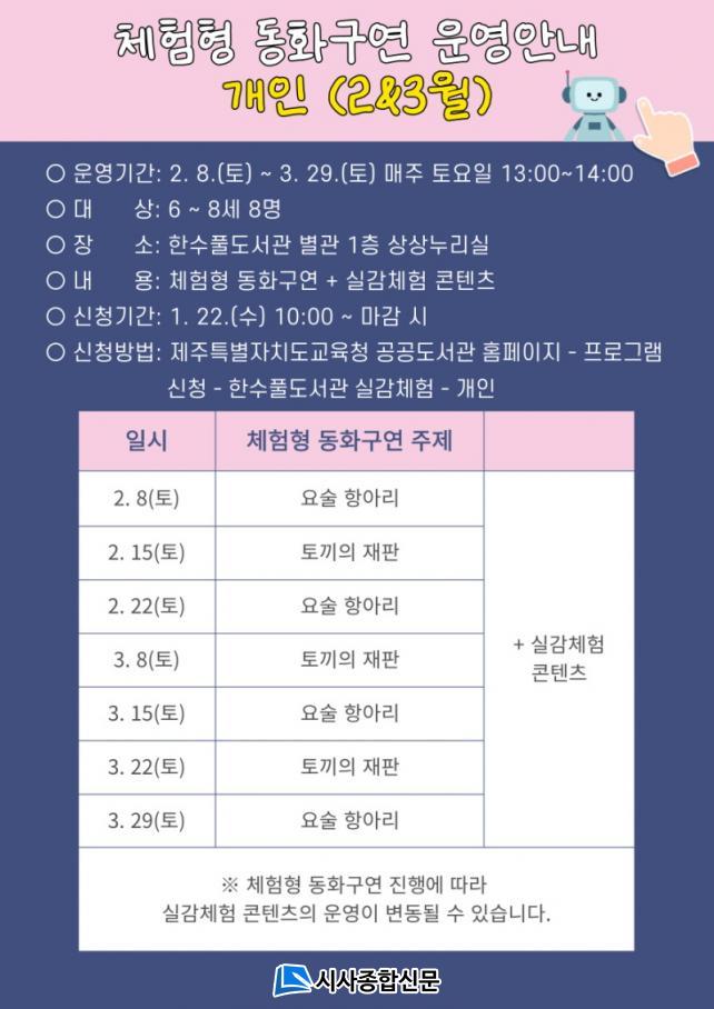 µ¿È±¸¿¬¿¡¼´Â ±è¹Ì¶ó, ±èÈ¿Á¤, ȫȿÁ¤ °»ç°¡ Âü¿©ÇÏ¿© ±¹¸³¾î¸°ÀÌû¼Ò³âµµ¼°ü¿¡¼ °³¹ß․º¸±ÞÇÑ¡®¿ä¼ú Ç׾Ƹ®¡¯¿Í¡®Åä³¢ÀÇ ÀçÆÇ¡¯Ã¼ÇèÇü µ¿È±¸¿¬À» ÁøÇàÇÑ´Ù. ¶ÇÇÑ, ´Ü¸é․´Ù¸é ½Ç°¨Çü üÇè ÄÜÅÙÃ÷¸¦ Ȱ¿ëÇÑ ½Ç°¨Çü üÇè Ȱµ¿ ½Ã°£µµ Á¦°øµÈ´Ù.
